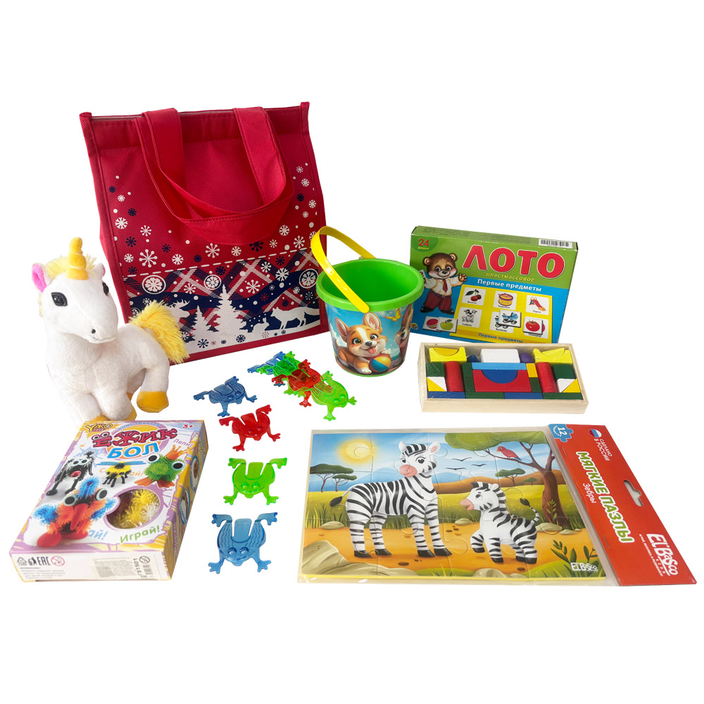 2. ДЕРЕВЯННЫЙ КОНСТРУКТОР "ЦВЕТНЫЕ БЛОКИ". КОМПЛЕКТАЦИЯ: 26 ДЕТАЛЕЙ. РАЗМЕР 17*8*2 СМ 3. ДЕТСКОЕ ВЕДЁРКО "ЩЕНКИ". РАЗМЕР 8,5*11*12,5 СМ 4. НАСТОЛЬНАЯ ИГРА "ЛОТО. ПЕРВЫЕ ПРЕДМЕТЫ". ПЕРЕД ВАМИ ПОЗНАВАТЕЛЬНАЯ ИГРА, КОТОРАЯ ПОЗВОЛИТ ВЕСЕЛО ПРОВЕСТИ ВРЕМЯ КАК ДЕТЯМ, ТАК И ВЗРОСЛЫМ. ОНА РАЗВИВАЕТ ЛОГИЧЕСКОЕ И АССОЦИАТИВНОЕ МЫШЛЕНИЕ, ПОМОГАЕТ В ДОШКОЛЬНОЙ ПОДГОТОВКЕ. В ЭТОЙ ИГРЕ МОГУТ ПРИНИМАТЬ УЧАСТИЕ ОТ 2 ДО 4 ИГРОКОВ. КОМПЛЕКТАЦИЯ: 24 ПЛАСТМАССОВЫЕ ФИШКИ, 4 КАРТОЧКИ. РАЗМЕР 14*19*3,3 СМ 5. ИГРА "ВЕСЁЛЫЕ ЗАБАВЫ. ЛЯГУШАТА". КОМПЛЕКТАЦИЯ: 8 ФИГУРОК ИЗ ПЛАСТИКА 6. МЯГКИЙ ПАЗЛ, 12 ЭЛЕМЕНТОВ. ЭТО УВЛЕКАТЕЛЬНАЯ ИГРА ДЛЯ ВСЕЙ СЕМЬИ. ПАЗЛЫ НЕ РАСПАДАЮТСЯ ПРИ СБОРКЕ, ИХ МОЖНО СОБИРАТЬ НЕСКОЛЬКО РАЗ ИЛИ СОХРАНИТЬ ПОЛУЧИВШУЮСЯ КАРТИНКУ НА ПАМЯТЬ, БЛАГОДАРЯ ТОЛЩИНЕ И ПЛОТНОСТИ ДЕТАЛЕЙ. ЯРКАЯ КАРТИНКА ПОДНИМЕТ НАСТРОЕНИЕ, А ТАКЖЕ ПОСПОСОБСТВУЕТ РАЗВИТИЮ ЦВЕТОВОГО И ЗРИТЕЛЬНОГО ВОСПРИЯТИЯ, ВНИМАТЕЛЬНОСТИ И ЛОГИЧЕСКОГО МЫШЛЕНИЯ. ЭЛЕМЕНТЫ ПАЗЛА ПРЕДСТАВЛЯЮТ СОБОЙ МЯГКИЕ ОБЪЕМНЫЕ ДЕТАЛИ ИЗ ВСПЕНЕННОГО ПОЛИМЕРА. ПАЗЛЫ РАЗДЕЛЕНЫ НА 12 ЭЛЕМЕНТОВ. РАЗМЕР СОБРАННОГО ПАЗЛА - ФОРМАТ А5 . 7. МЯГКАЯ ИГРУШКА - СИМВОЛ 2026 ГОДА. РАЗМЕР 17*8*19 СМ 8. КОНДИТЕРСКИЕ ИЗДЕЛИЯ 305 Г 9. УПАКОВКА - ТЕРМОСУМКА С РУЧКАМИ, ЗАСТЁЖКА - ЛИПУЧКА, МАТЕРИАЛ СПАНДБОНД. РАЗМЕР 25*15*29,5 СМ |