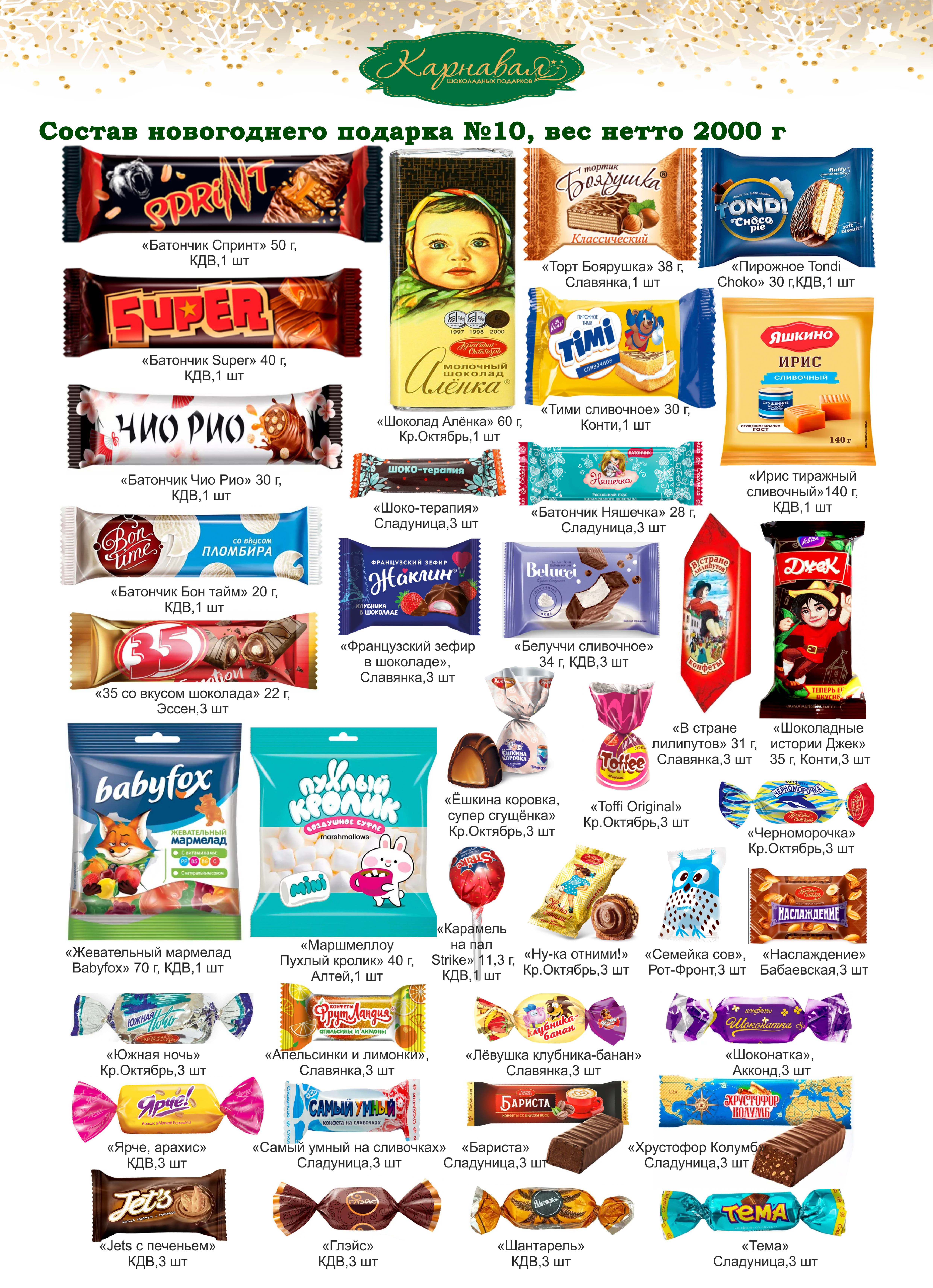 Конфет в подарке