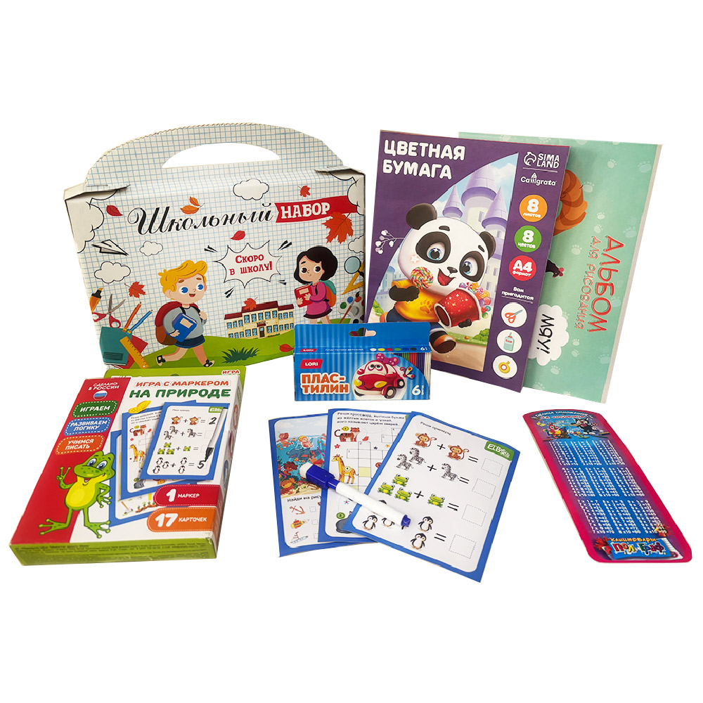 Универсальный школьный набор для будущих первоклассников, упакован в прочную картонную коробку. В состав набора входят необходимые в первые дни занятий школьные принадлежности: цветная бумага, альбом, пластилин и весёлая игра для обучения навыкам счёта, развития логики. Все составляющие сертифицированы, в соответствии с требованиями о безопасности продукции для детей и подростков законодательства РФ СОСТАВ: * внешний вид составляющих набора и производителей в описании, может отличаться от представленных |