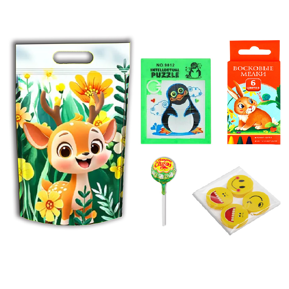 Подарок к школе, для наших любимых малышей, это не только полезные принадлежности, но и весёлые, интересные игры, забавы. В состав набора входят: яркая и позитивная упаковка-пакетик с зверушками, а также развивающая игра "Пятнашки", восковые мелки и другие товары. Давайте дарить детям яркие и позитивные эмоции! Все составляющие сертифицированы, в соответствии с требованиями о безопасности продукции для детей и подростков законодательства РФ СОСТАВ: * внешний вид составляющих набора и производителей в описании, может отличаться от представленного |