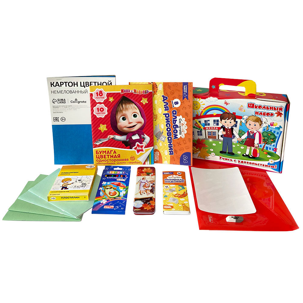 Отличный подарок будущему школьнику. Упакован в яркую, красочную упаковку, которая в дополнение ко всему, является раскраской. Рисунок на оборотной стороне коробки ваш ребёнок может раскрасить по своему усмотрению - карандашами или акварелью. В наборе вы найдёте все необходимые школьные принадлежности, которые станут эффективными помощниками в процессе обучения вашего первоклашки. Пластилин и доска для лепки, карандаши и пенал, папка формата А4 для альбома, картона и цветной бумаги, а также другие полезные товары. Все составляющие сертифицированы, в соответствии с требованиями о безопасности продукции для детей и подростков законодательства РФ. СОСТАВ: * внешний вид составляющих набора, может отличаться от представленных на фото |